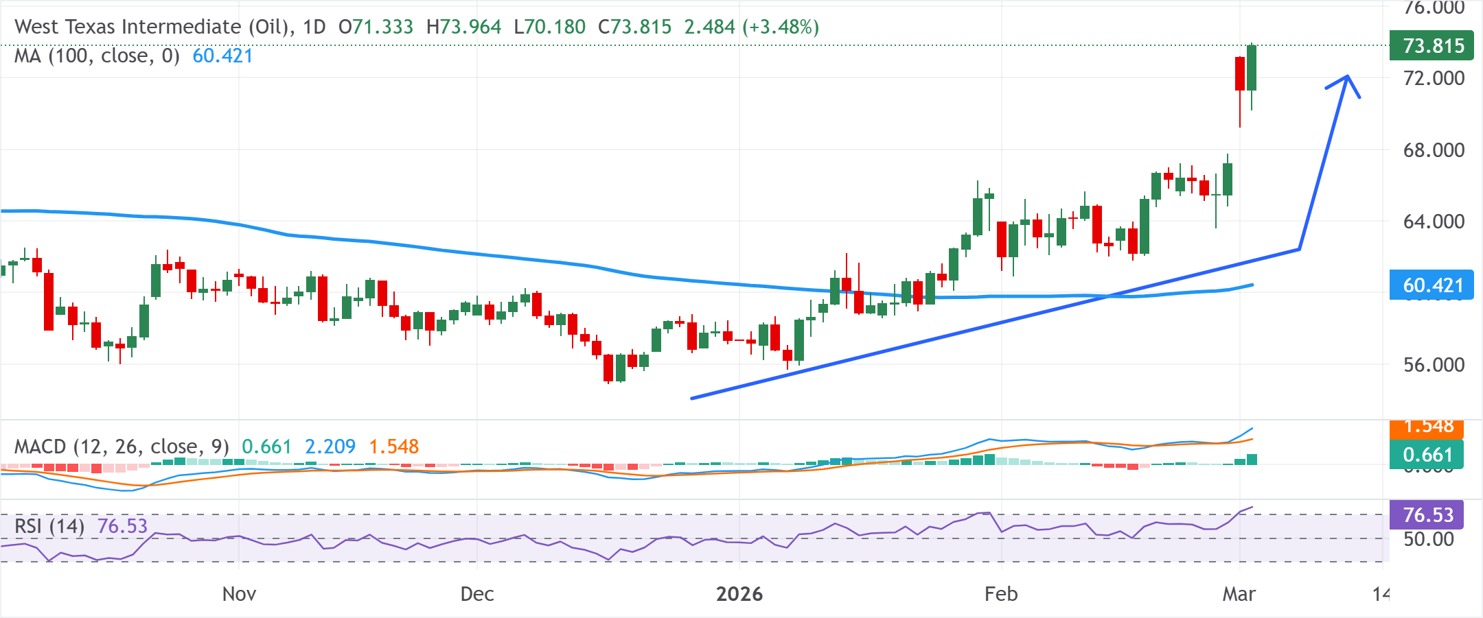 Harga Minyak Mentah melonjak ke level tertinggi sejak Juni 2025 karena kekhawatiran akan meluasnya konflik dan penutupan efektif Selat Hormuz.