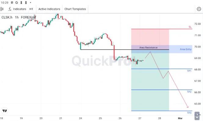 Harga masih bergerak di bawah area resistance. Pantau area resistance yang terlihat di time frame H1, bisa dimanfaatkan untuk mencari konfirmasi sinyal sell jika terjadi pullback ke area tersebut.