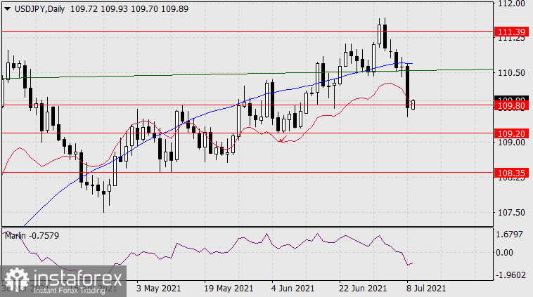 Marlin oscillator telah masuk ke area negatif. Saat ini, harga bertahan di level target dan tengah bersiap mencapai level selanjutnya di 109.20 - titik terendah Juni.