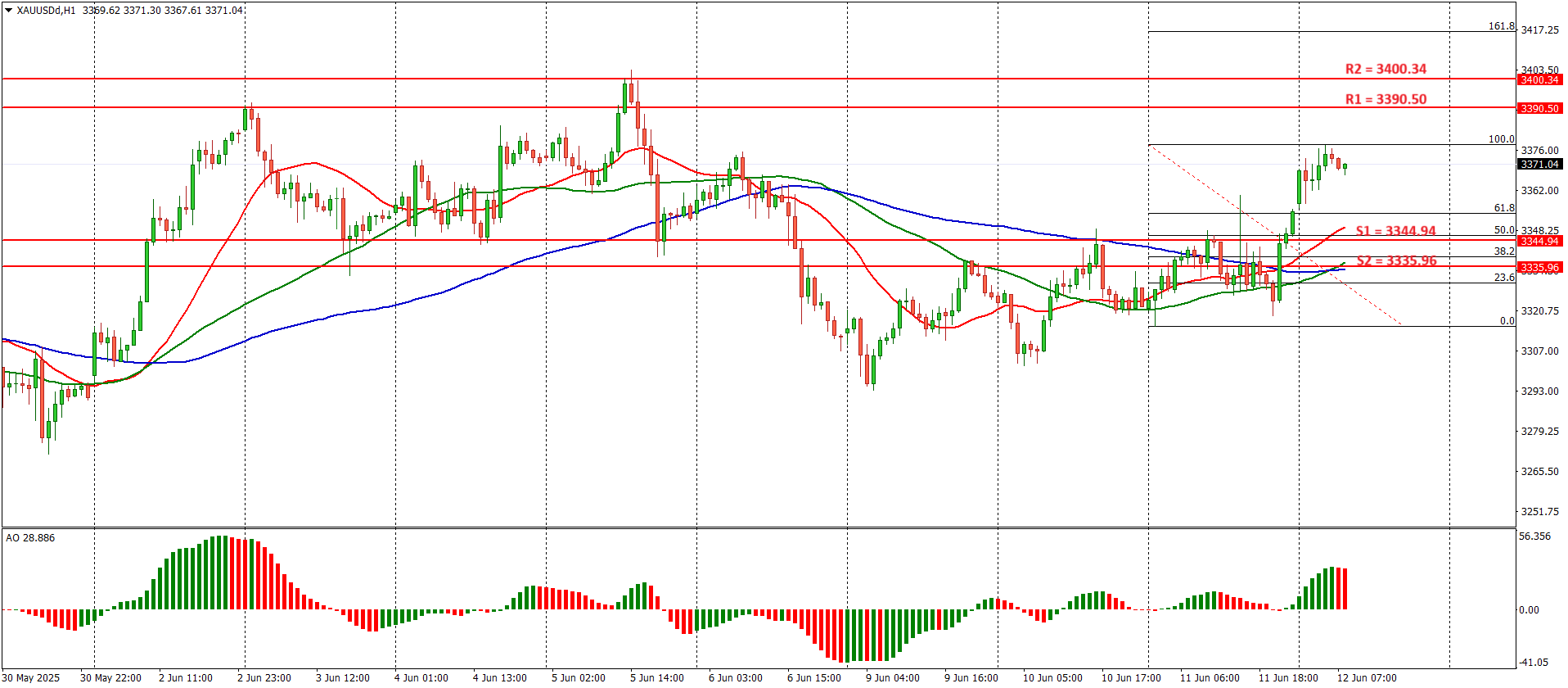 Harga Emas (XAU/USD) menutup perdagangan hari rabu kemarin dengan penguatan yang signifikan dimana sempat menembus ketinggian harian di level 3360.30 pasca rilis data inflasi AS dan kemudian menutup perdagangannya di level 3354.11. Data inflasi yang dirilis menggambarkan sedikit pelemahan yang terjadi sehingga membuat taruhan The Fed untuk melakukan pemangkasan suku bunga pada bulan September nanti.