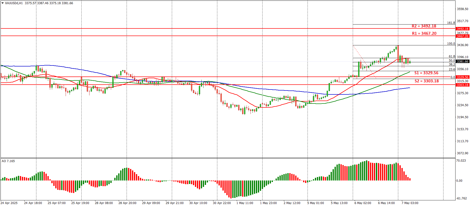 Harga Emas (XAU/USD) menutup perdagangan hari selasa kemarin di level 3435.71, dan mencapai level tertinggi dalam kisaran dua minggu terakhir. Melonjaknya Emas disebabkan karena kembalinya pasar Cina pasca liburan panjang serta masih terdapatnya kekhawatiran yang terjadi akibat sikap yang inkonsisten pada kebijakan yang dilakukan oleh pemerintah AS. Penguatan logam mulia ini juga di topang oleh keadaan geopolitik dimana konflik terbaru antara India dan Pakistan mendorong Emas untuk kembali ke level tertinggi dalam pergerakannya.