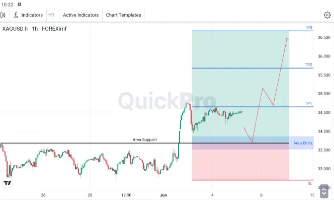 Rebound terjadi dari area support, bias intraday masih bullish hari ini. Area support tersebut masih bisa dijadikan acuan mencari sinyal buy.