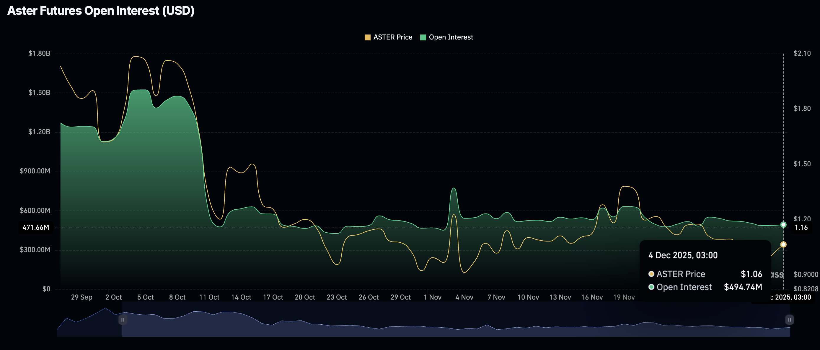 Meski rilis peta jalan, minat ritel terhadap ASTER tetap relatif rendah, seperti yang dibuktikan oleh kontrak berjangka Open Interest (OI) yang rata-rata $495.000 pada hari Kamis, turun dari $1,19 miliar pada 10 Oktober.