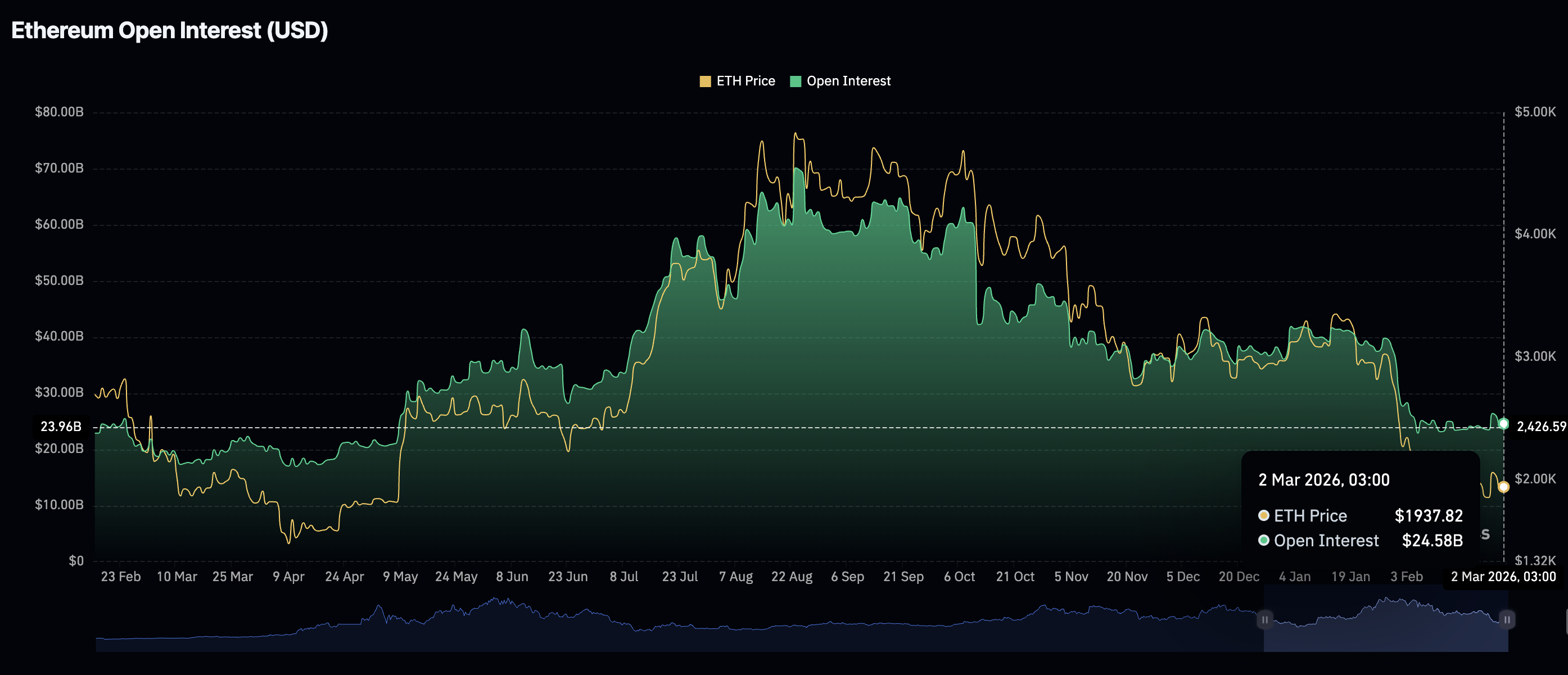 Ethereum juga menghadapi tekanan di pasar derivatif, dengan OI berjangka rata-rata $24,58 miliar pada hari Senin, sedikit meningkat dari $24,38 miliar pada hari sebelumnya. Meskipun ada peningkatan jangka pendek ini, OI berjangka tetap jauh di bawah rekor $70 miliar pada bulan Agustus.