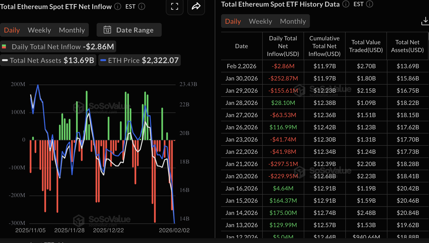 Di sisi lain, ETF spot Ethereum memperpanjang rentetan arus keluarnya selama tiga hari berturut-turut, saat investor menarik hampir $3 juta pada hari Senin. Arus masuk kumulatif kini mencapai $11,97 miliar dengan aset bersih rata-rata $13,69 miliar. Arus keluar yang terus berlanjut dapat meredakan sentimen, memperlambat pemulihan.