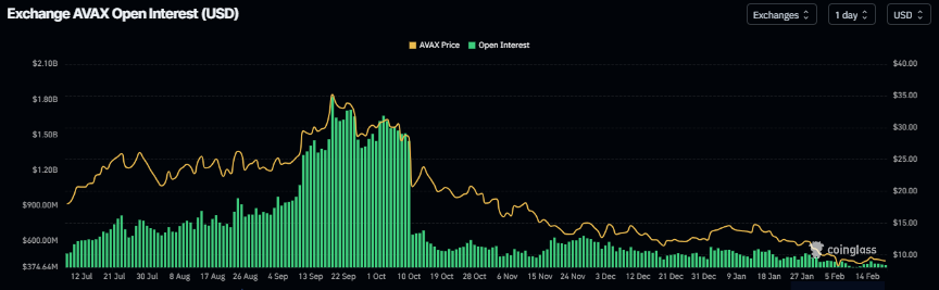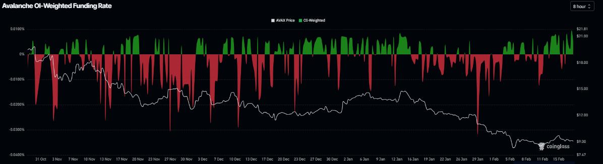 Di sisi derivatif, Open Interest (OI) berjangka Avalanche turun menjadi $397 juta pada hari Rabu, setelah menurun secara stabil sejak pertengahan Januari, dan mendekati level terendah 11 Februari sebesar $378 juta. Penurunan OI ini mencerminkan berkurangnya partisipasi investor dan memproyeksikan pandangan bearish.