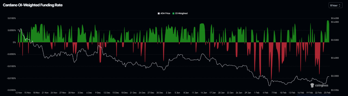 Selain pemegang yang mengakumulasi, data derivatif juga mendukung bias positif. Suku bunga pendanaan Cardano berbalik positif pada hari Selasa dan melonjak menjadi 0,007% pada hari Kamis, menunjukkan bahwa posisi long membayar posisi short. Secara historis, seperti yang ditunjukkan dalam grafik di bawah, ketika suku bunga pendanaan berbalik dari negatif ke positif dan meningkat, harga Cardano telah melonjak tajam.
