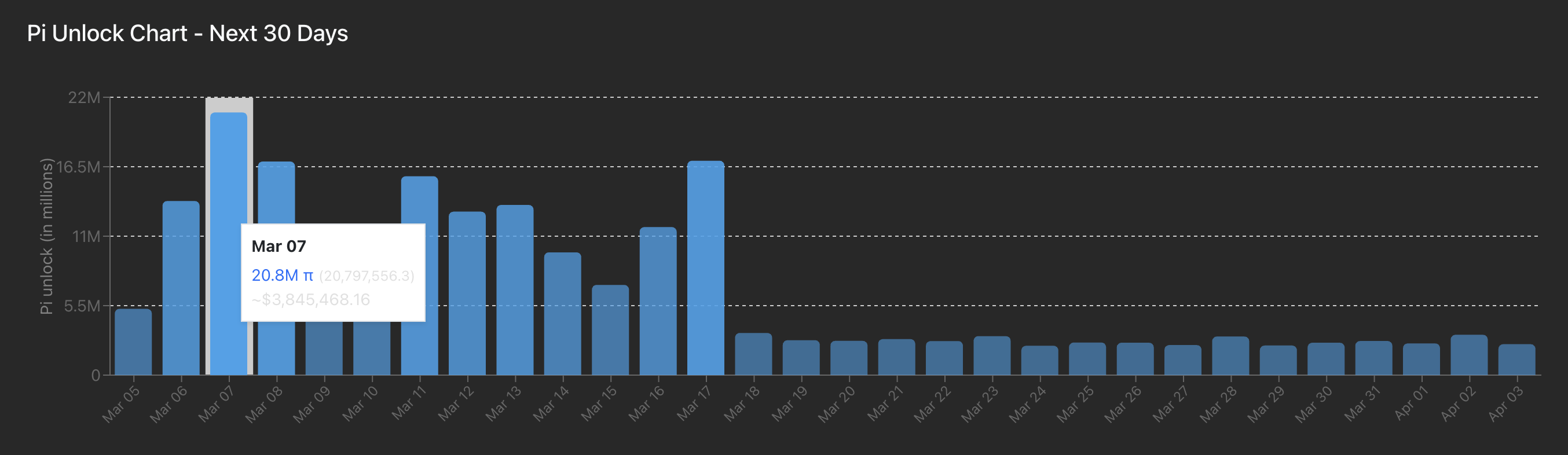 - Lebih dari 20 juta token PI akan dibuka pada hari Sabtu, yang merupakan yang terbesar dalam 30 hari ke depan, yang dapat membatasi pemulihan.