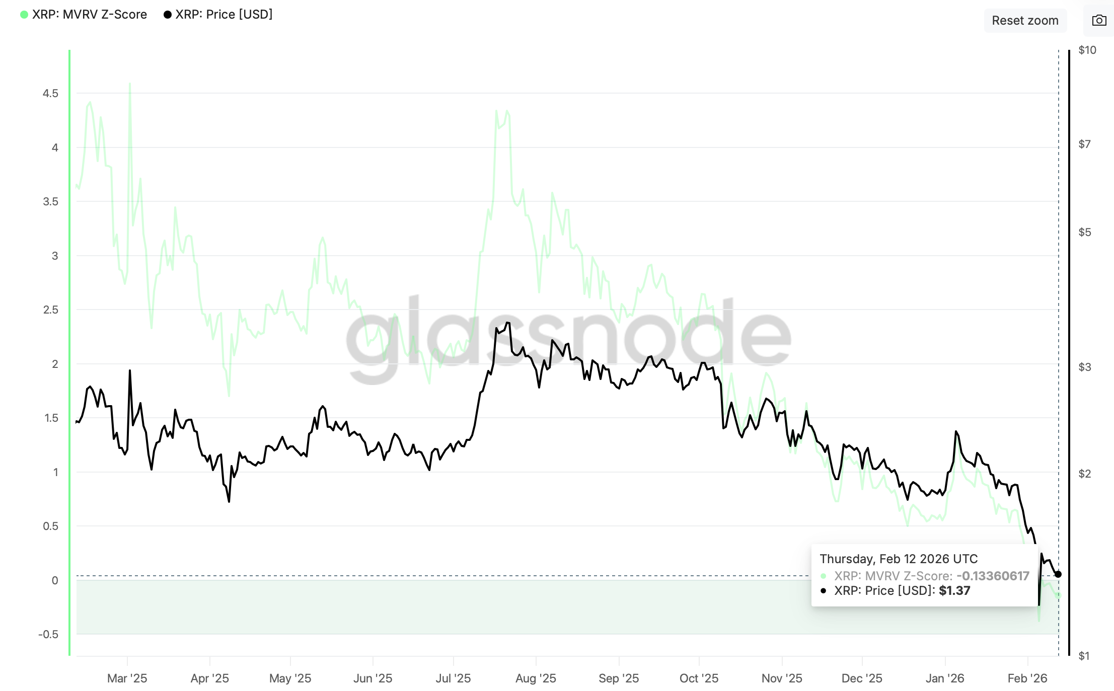 Sementara itu, MVRV-Z Score, sebuah metrik yang mengukur apakah XRP dinilai terlalu tinggi atau rendah relatif terhadap nilai wajarnya, turun ke wilayah negatif pada awal Februari, menunjukkan bahwa token mungkin telah mencapai terendah.