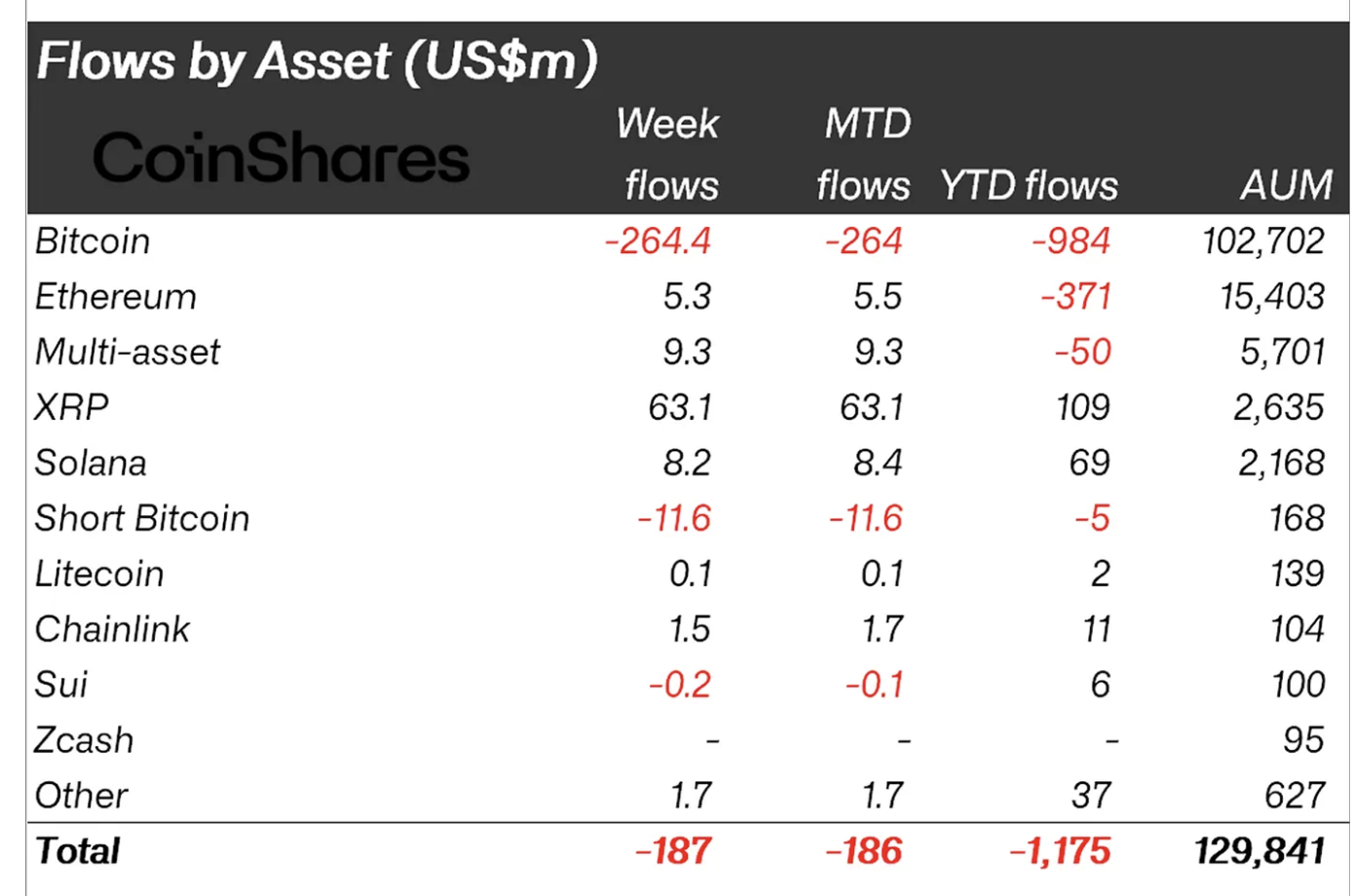 Minggu lalu, ETF XRP mengumpulkan $39 juta dalam total arus masuk hingga hari Jumat. Seperti yang dilaporkan, total arus masuk ke produk investasi terkait XRP rata-rata mencapai $63,1 juta minggu lalu. Aset bersih yang dikelola mencapai $2,6 miliar per hari Jumat, menurut CoinShares.