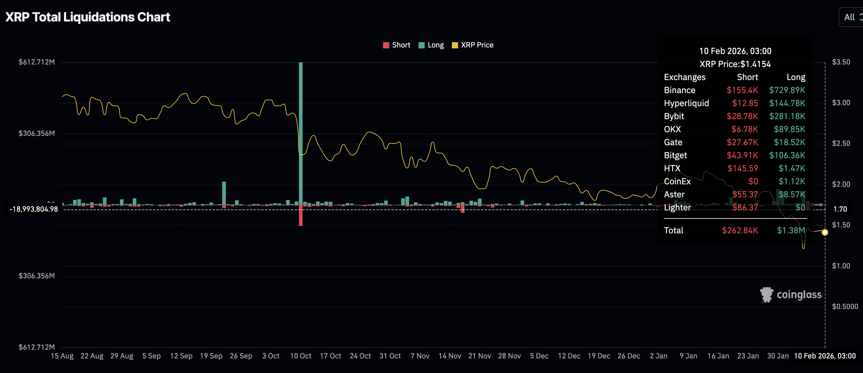 - XRP mendorong menuju support segera di $1,40, diperdagangkan jauh di bawah EMA 50-, 100-, dan 200-hari.