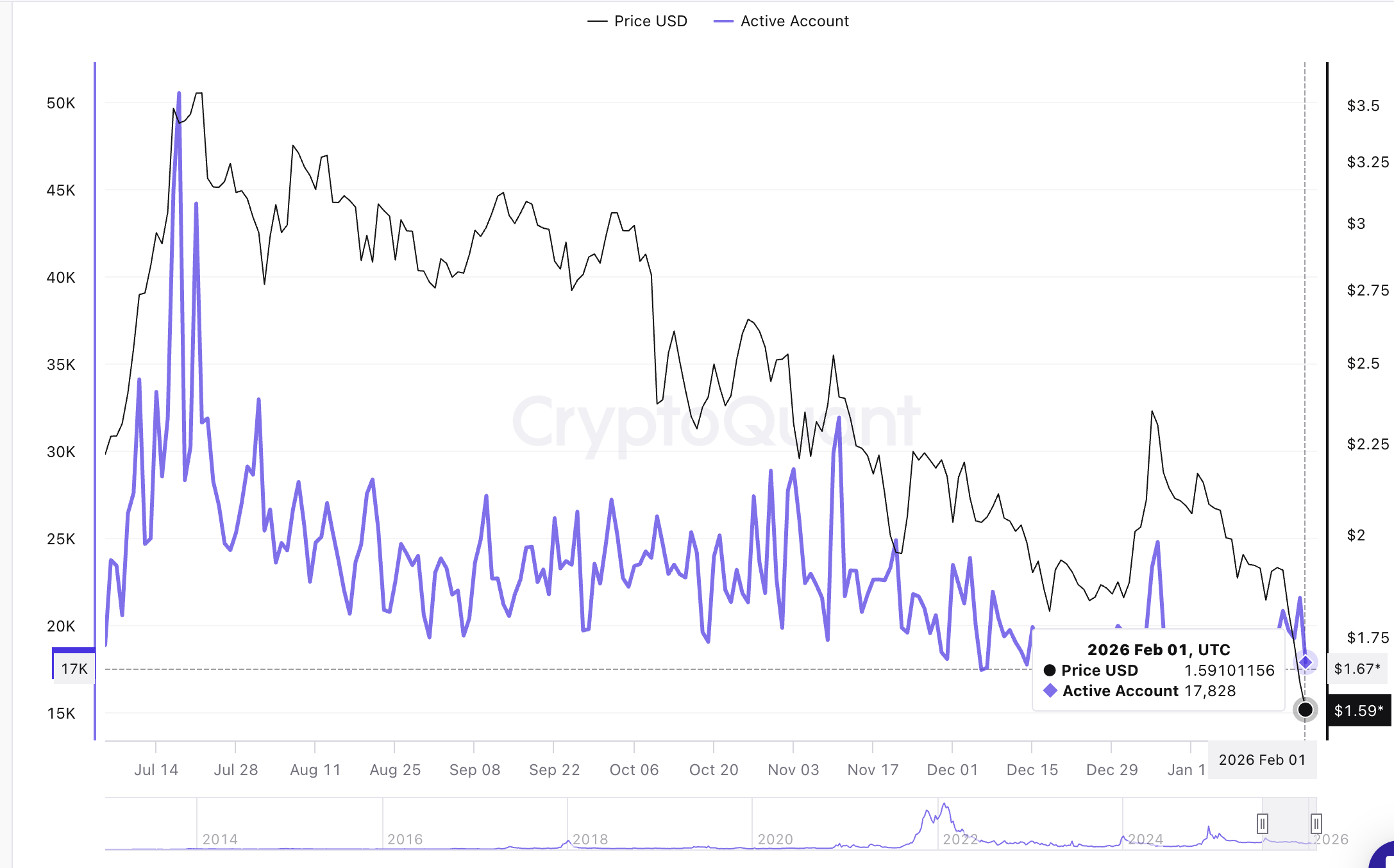 - Alamat aktif di XRP Ledger turun di bawah 18.000 pada hari Minggu di tengah sentimen yang menghindari risiko