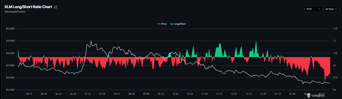 Selain itu, rasio long-to-short XLM berada di 0,79 pada hari Selasa, mendekati level terendah dalam lebih dari sebulan. Rasio di bawah 1 ini menunjukkan sentimen bearish karena para pedagang bertaruh bahwa harga Stellar akan turun.