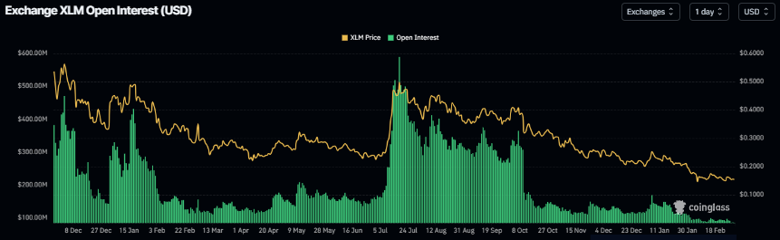 - Data derivatif membatasi pemulihan, dengan suku bunga pendanaan XLM negatif, posisi jual meningkat dan open interest yang menurun, menandakan sentimen bearish.