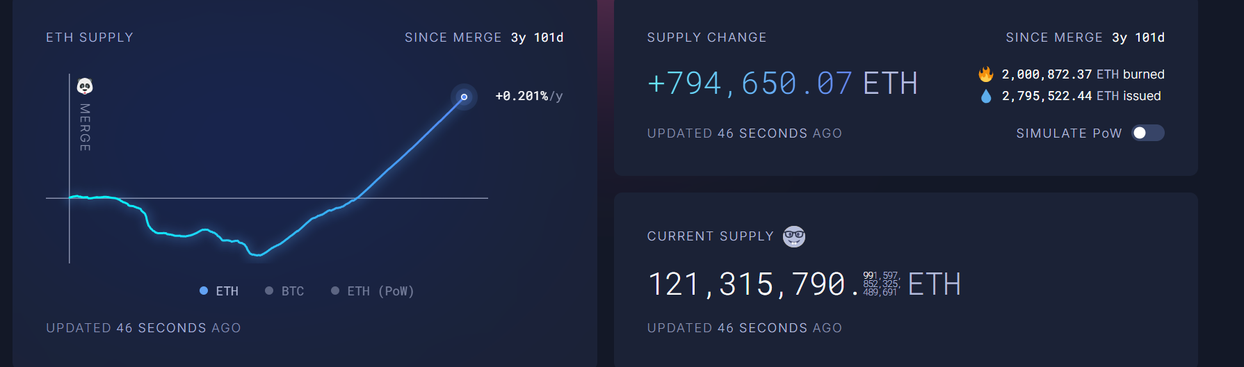 Akibatnya, jumlah ETH yang dibakar di Ethereum terus menurun, mendorong total pasokan ke atas.