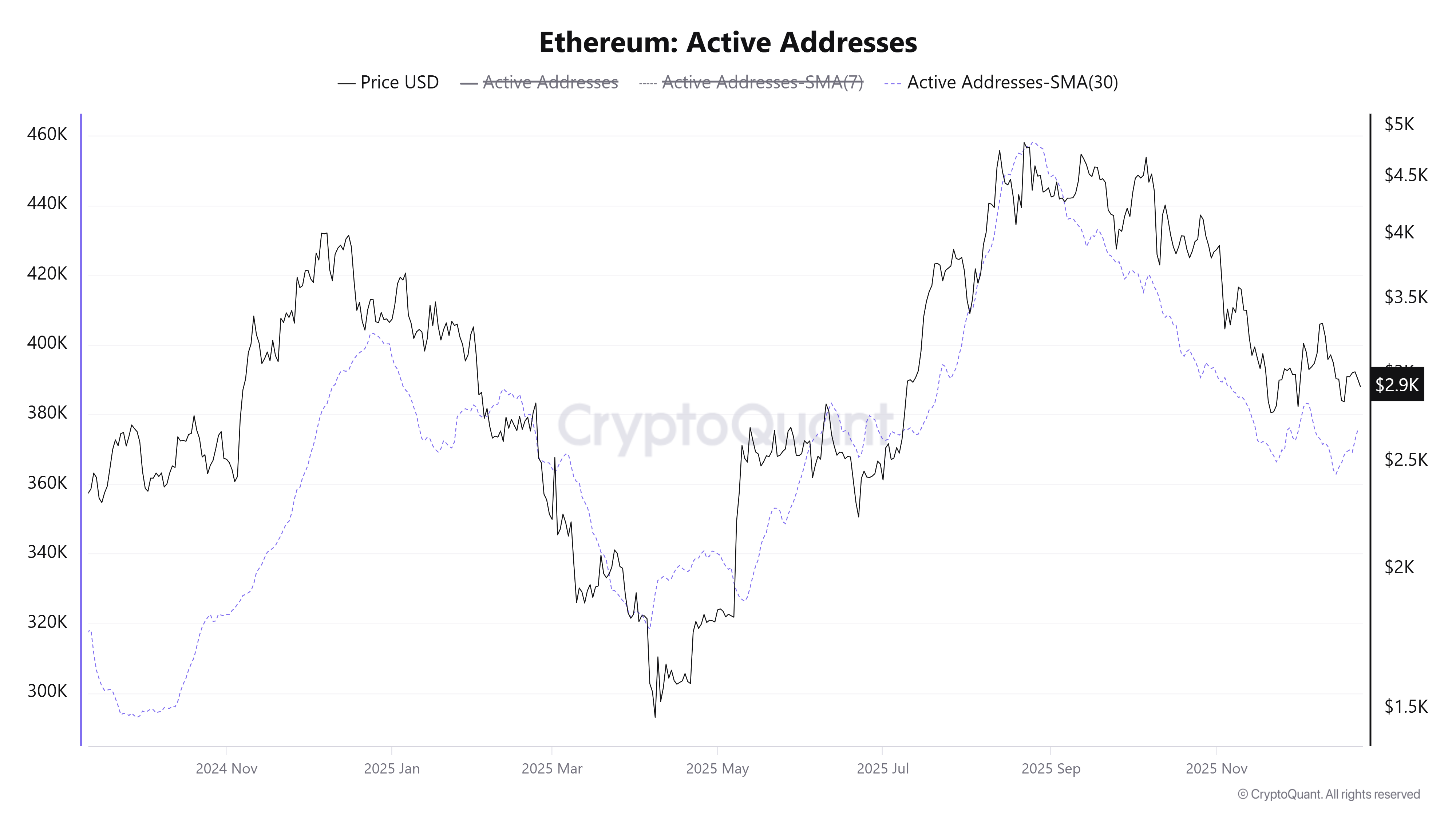 Harga ETH kadang-kadang mengikuti arah aktivitas jaringan. Oleh karena itu, alamat aktif mungkin perlu kembali sebelum altcoin teratas dapat melakukan pemulihan besar.