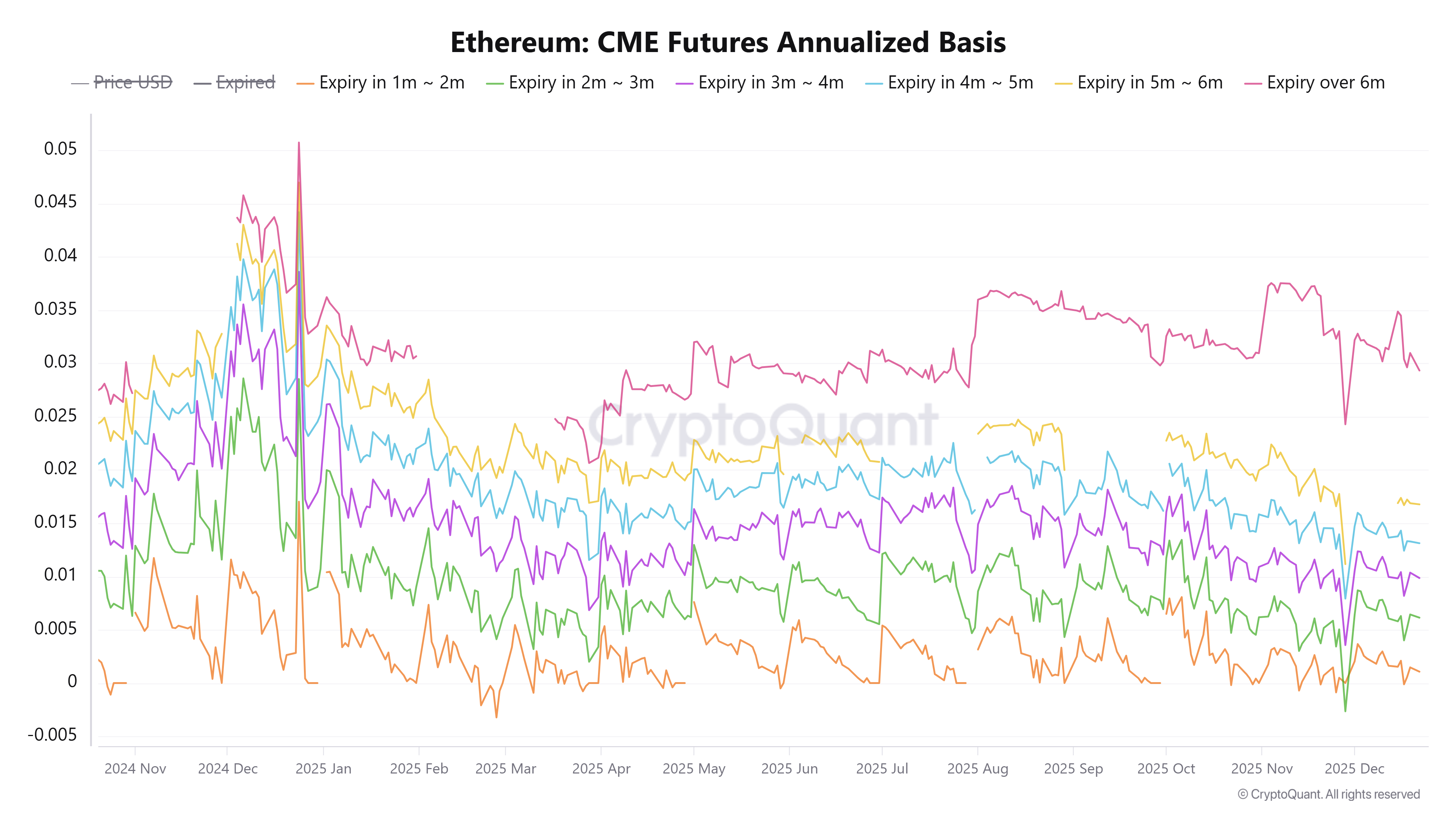 Di antara faktor-faktor lainnya, hedge fund dan arbitrageur adalah kontributor utama terhadap penurunan tajam tersebut. Funds ini telah terlibat dalam perdagangan basis sejak November/Desember 2024, ketika basis ETH CME sekitar 20%.