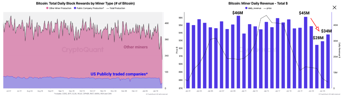Laporan mingguan CryptoQuant yang dirilis pada hari Kamis menyoroti bahwa aktivitas penambangan Bitcoin terganggu oleh badai musim dingin di AS, yang menyebabkan beberapa perusahaan penambangan besar di AS mengurangi operasi.