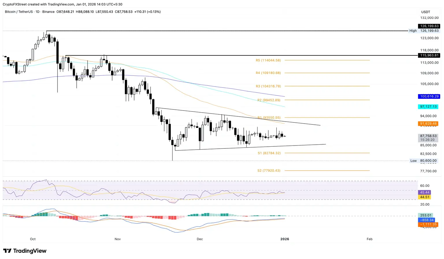 Prakiraan Harga Bitcoin: BTC Bertahan di Atas $87.000 di Tengah Penghindaran Risiko di Tahun Baru