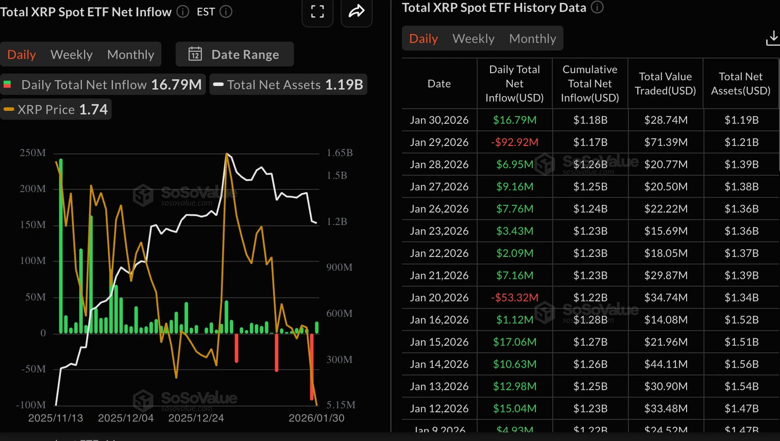 Ripple (XRP) diperdagangkan di atas $1,60 pada hari Senin, mencoba pulih dari penurunan tajam minggu lalu yang menguji support di $1,50.
