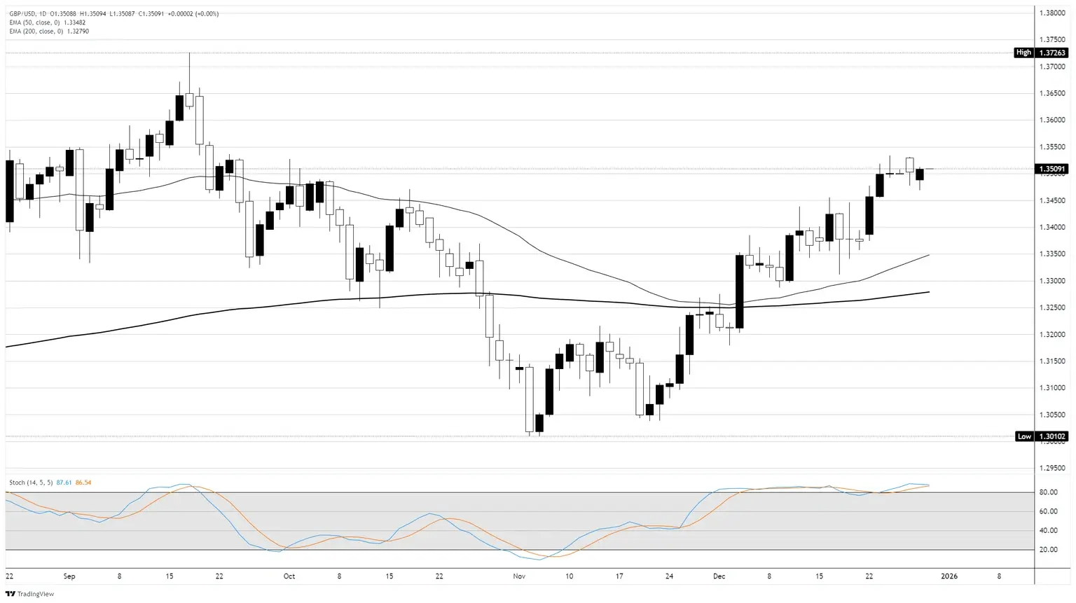 GBP/USD tetap didorong di sisi atas saat pasar melewati minggu perdagangan terakhir tahun ini. Cable mendapatkan kecenderungan bullish untuk menjaga aksi harga di sisi tinggi level 1,3500, meskipun volume liburan akhir tahun tidak mungkin melihat kemajuan signifikan ke arah mana pun saat 2025 mendekati akhir.