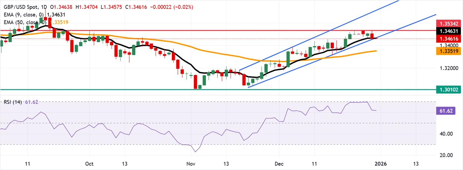 Prakiraan Harga GBP/USD: Menguji support 1.3450 setelah bergerak di bawah EMA sembilan hari