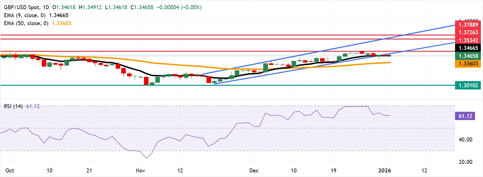 Prakiraan Harga GBP/USD: Bertahan di atas EMA sembilan hari dekat 1.3450