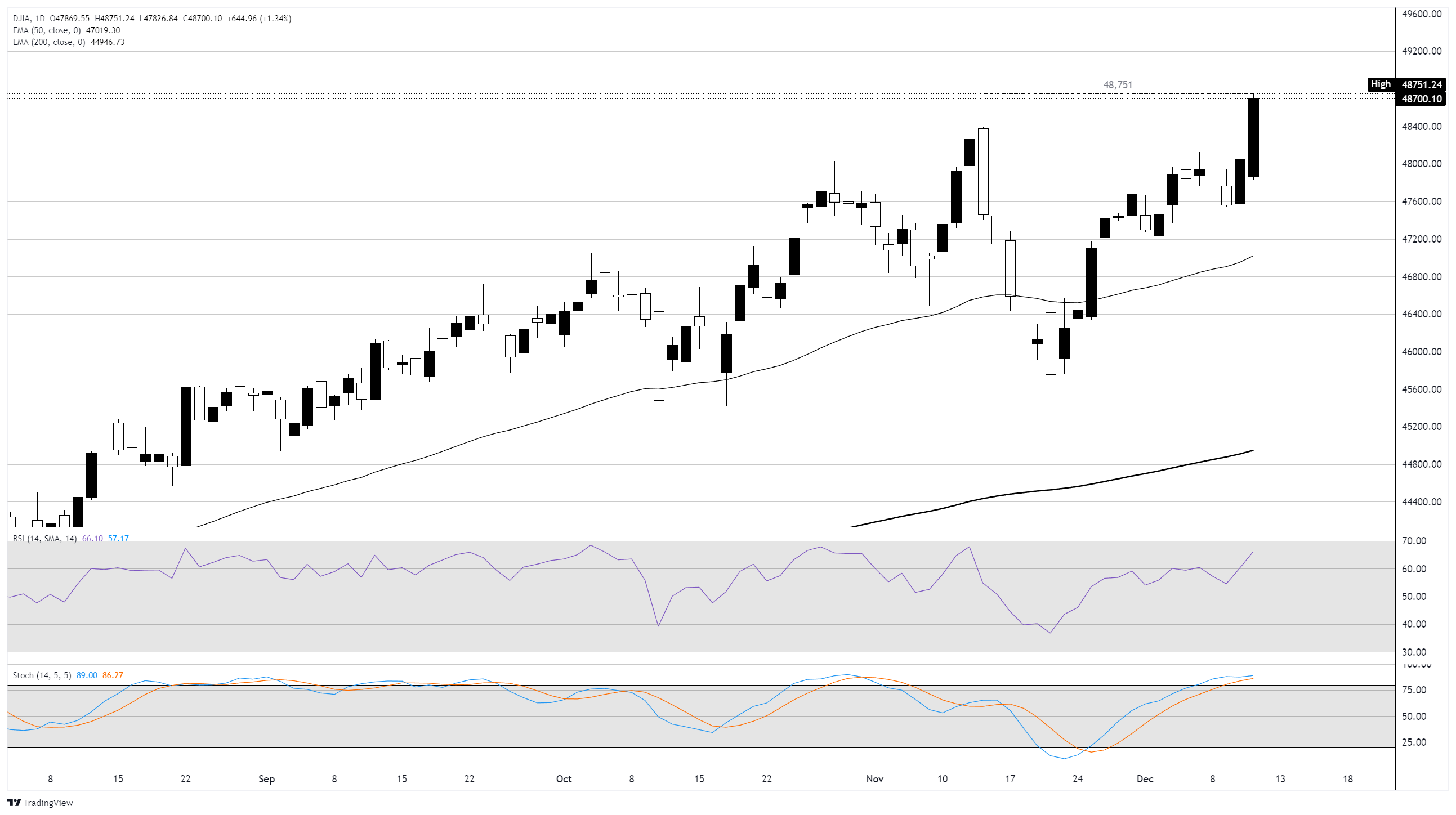 Sementara itu, suku bunga yang lebih rendah mendukung saham-saham siklikal dan saham-saham kecil, mendorong Russell 2000 ke rekor dalam perdagangan harian bersamaan dengan Dow. Para investor mempertimbangkan kemungkinan 'rally Santa Claus' di akhir tahun, meskipun beberapa ahli strategi memperingatkan tentang potensi hambatan pada tahun 2025–2026, termasuk kelelahan sektor AI, pergeseran politik, dan perubahan kepemimpinan di The Fed.