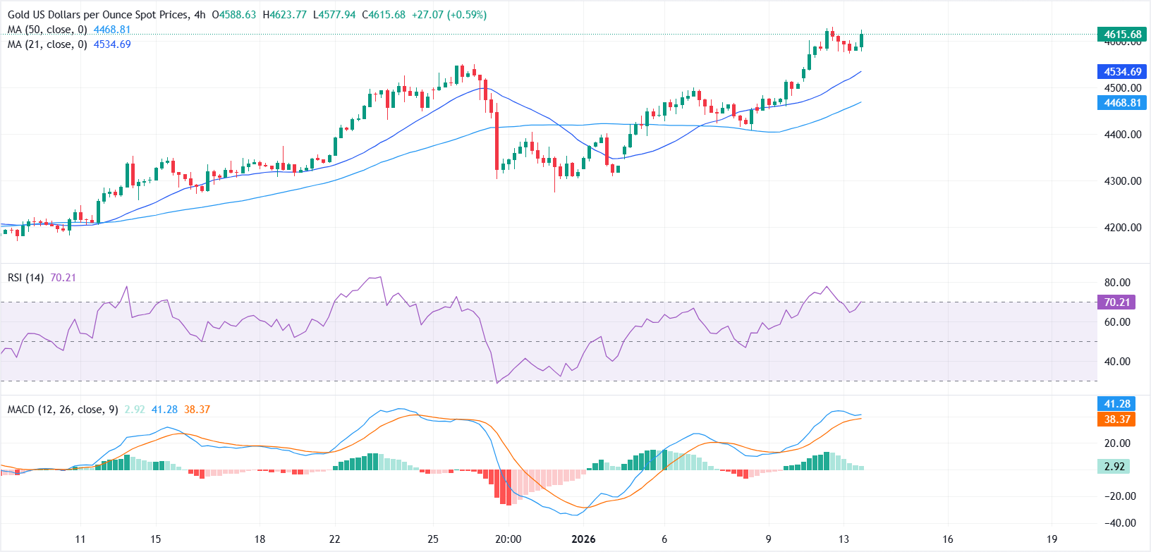 Emas (XAU/USD) naik tipis pada hari Selasa saat para pedagang bereaksi terhadap data inflasi AS terbaru. Pada saat berita ini ditulis, XAU/USD diperdagangkan di sekitar $4.615, naik hampir 0,6%, hanya sedikit di bawah rekor tertinggi Senin di dekat $4.630.