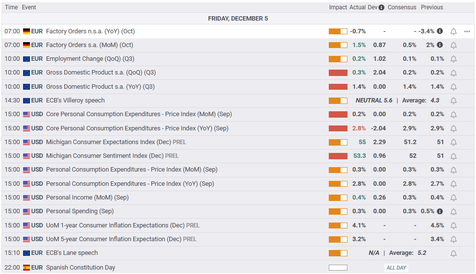 Pada paruh kedua hari ini, BEA AS akan mempublikasikan data Indeks Harga PCE untuk bulan September, pengukur inflasi yang disukai Fed. Di sesi Amerika nanti, para investor akan mencermati laporan Indeks Sentimen Konsumen UoM untuk bulan Desember.