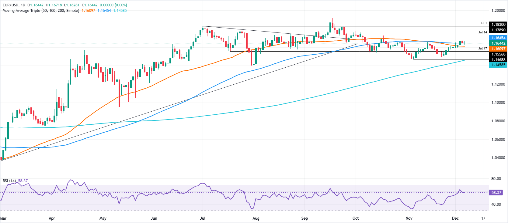 - EUR/USD berkonsolidasi di dekat 1,1650, dengan teknikal menunjukkan momentum bearish.