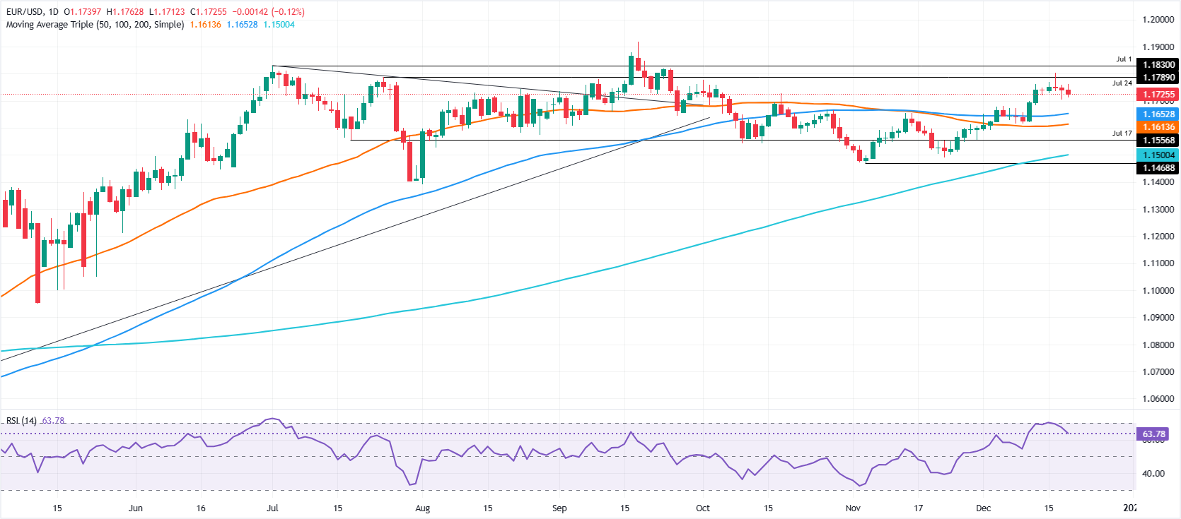 Selama lima hari berturut-turut, EUR/USD berkonsolidasi di tengah kisaran 1,1700-1,1800, saat aksi harga menjadi tenang dan likuiditas menyusut saat para pedagang bersiap untuk menghadapi liburan Natal.