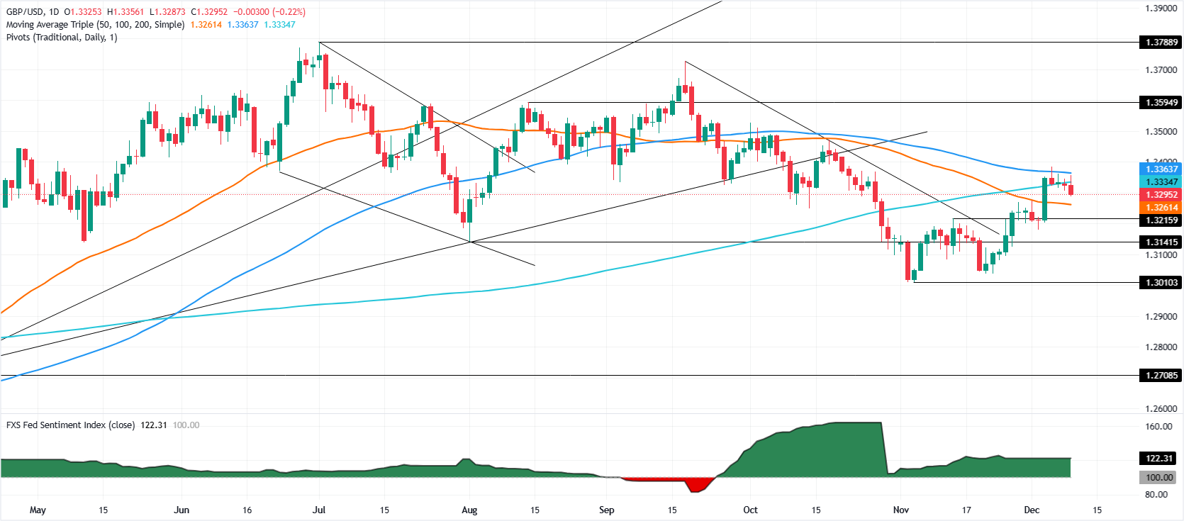 - GBP/USD jatuh di bawah 1.3300 setelah lowongan pekerjaan JOLTS melonjak menjadi 7,67 juta pada bulan Oktober, meningkatkan permintaan Dolar AS.
