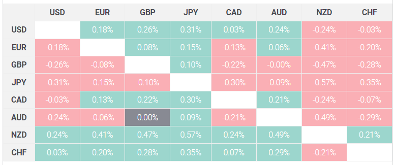 Tabel di bawah ini menunjukkan persentase perubahan Dolar AS (USD) terhadap mata uang-mata uang utama yang terdaftar hari ini. Dolar AS adalah yang terkuat terhadap Yen Jepang.